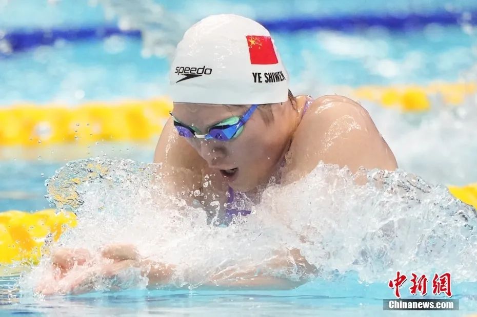 女子200米蛙泳决赛,名将叶诗文成功夺冠。她自2014年仁川亚运会夺得三枚金牌后,时隔九年再次站上亚运之巅。