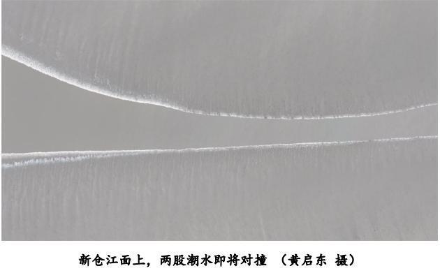 除利用新手段之外,在富春江悬空沙的支汊发现对撞潮,是本次科考的一大亮点。科考队员还在盐官江面发现了交叉潮,在新仓的江面更是观测到了罕见的双V交叉潮,而嘉绍大桥附近的鱼鳞潮较之前出现的范围与规模有所减小。