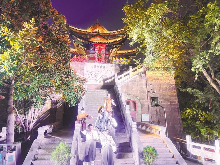 9月29日晚,实景木偶剧《大禹晴川情》在晴川阁精彩上演。(湖北日报全媒记者 刘洁 摄)