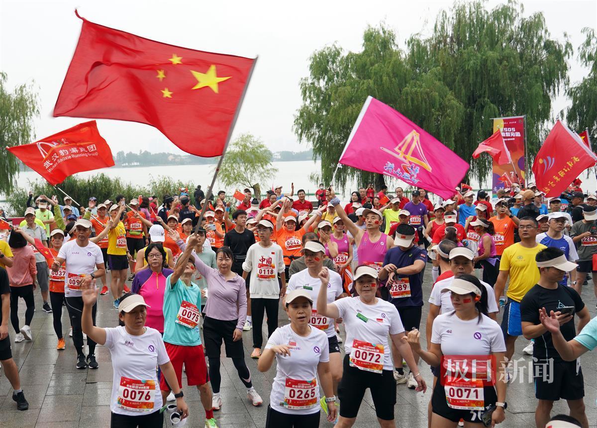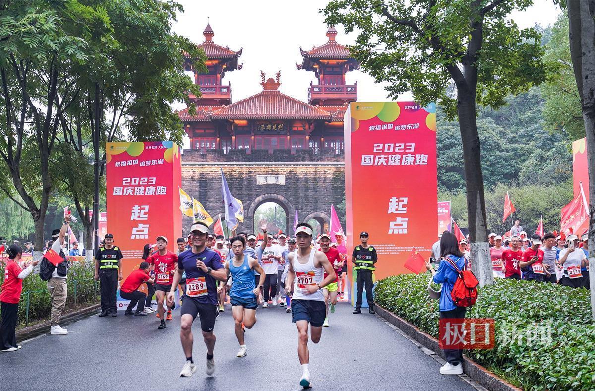 10月1日国庆节当天,“祝福祖国 追梦东湖”2023国庆健康跑活动在东湖风景区举行。