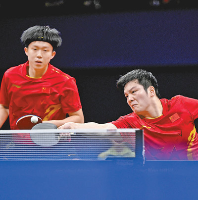 10月1日,杭州亚运会乒乓球项目男子双打决赛,中国体育代表团组合樊振东(右)/王楚钦夺得金牌。 新华社记者 王 鹏摄 |