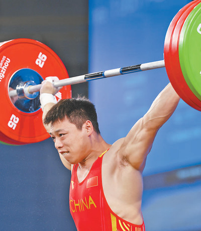 10月1日,杭州亚运会举重项目男子67公斤级比赛,中国体育代表团选手谌利军夺得金牌。 新华社记者 杨 磊摄 |