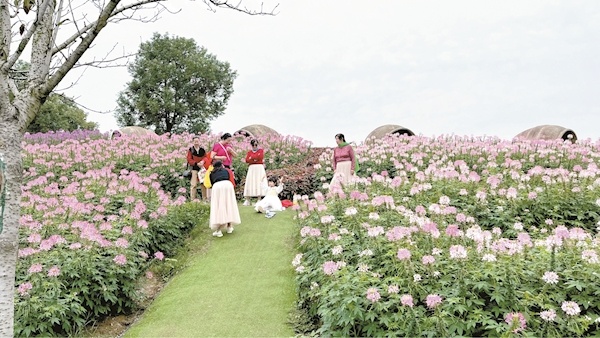 除了广受好评的四季花海,近年来,金卉庄园不断加大投资,引入网红“小蛮腰”“孔雀东南飞”表演秀、萌宠乐园、无动力乐园等项目,让游客的游玩体验更加丰富。