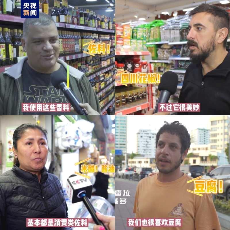 在巴西最大城市圣保罗、阿根廷首都布宜诺斯艾利斯、智利首都圣地亚哥、秘鲁首都利马和厄瓜多尔首都基多,总台记者一提到来自中国的食材,受访者们就滔滔不绝讲起了自己和家人平时最喜欢购买和食用的中国食材都有哪些。有对豆腐情有独钟的,因为它健康的制作方式和丝滑的口感;还有人非常喜欢来自中国的大米,蒸着吃别提有多香了;甚至有拉美民众对四川花椒还颇有研究,认为它除了辣味,还有一种柠檬的香气,是一种拉美没有的独一无二的香料。