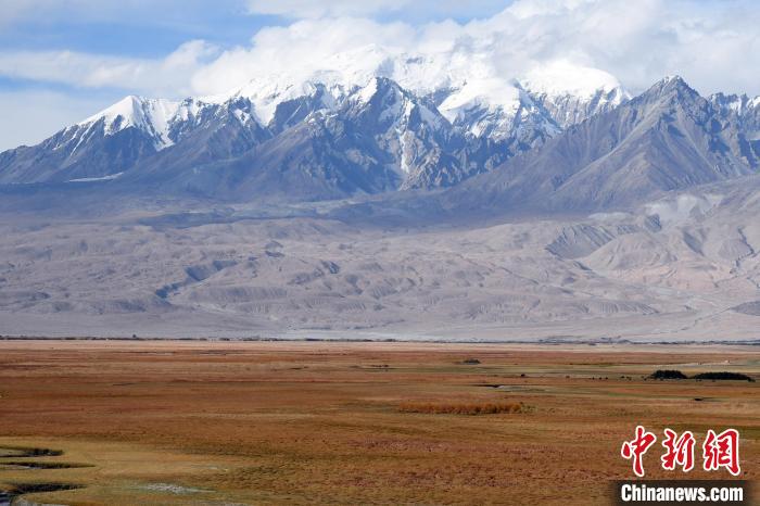 图为10月2日拍摄的新疆喀什地区塔什库尔干县塔合曼湿地和慕士塔格雪峰。中新网记者 孙亭文 摄