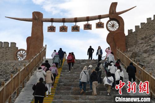 图为10月2日拍摄的位于帕米尔高原上的塔什库尔干县石头城遗址参观的游客。 中新网记者 孙亭文 摄