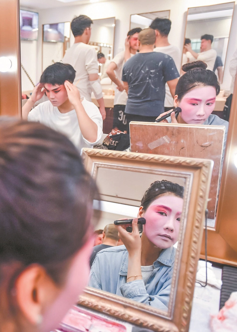 从恩师那学习享受排练场的邓雅倩也把戏曲舞台背后的功夫传递给了她的学生。“做为一名戏曲演员,我们应该做好传承链上注定要扮演的三个角色:学生、演员、老师。这是规律,也是每位戏曲人的使命。看到学生们每天汗流浃背地练习,仿佛看到了自己在艺校的样子。我知道她们很辛苦,但我觉得这一切付出都是值得的。”