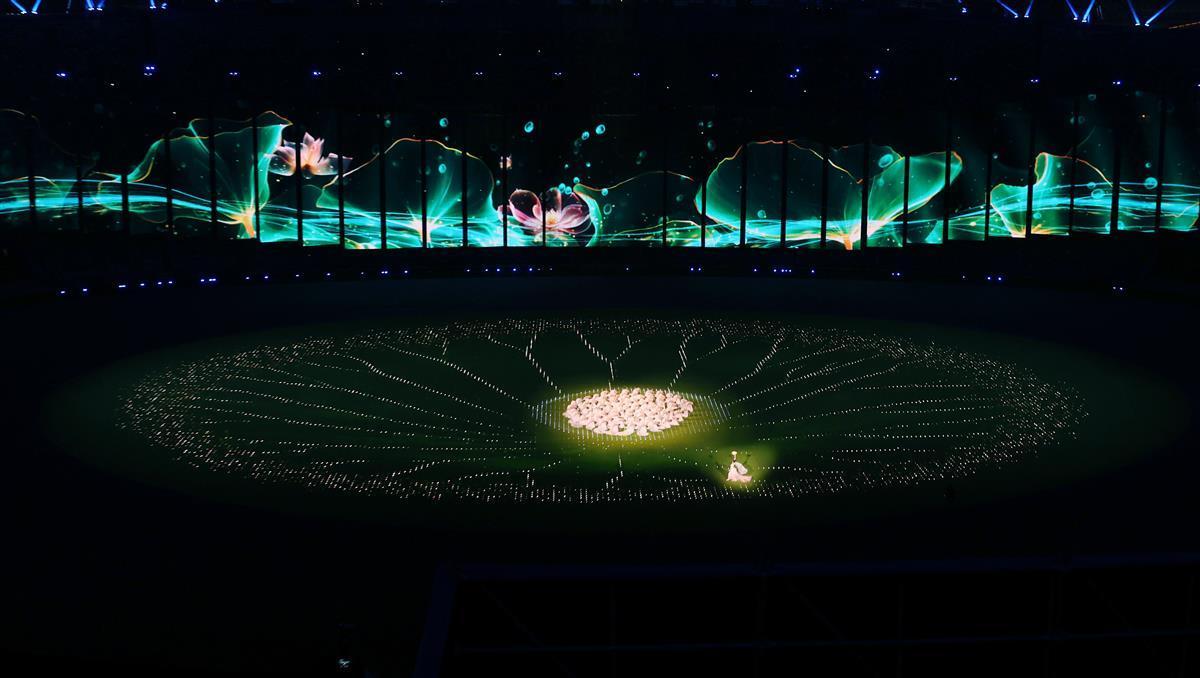 从秋分到寒露,杭州亚运会过去16天的情感在“大莲花”汇集与交融,《荷桂共生辉》凝结着拼搏与荣耀的记忆,以“攀花赠友”传承中式惜别之礼,以“荷桂共融”传达和合共生之情。张渠介绍,在《荷桂共生辉》这个节目中,他以杭州的荷花和桂花为灵感,通过笛箫等中国传统乐器来演奏中国调式,将荷花和桂花的香气、形态等元素融入音乐中。