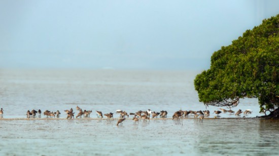 每年秋末冬初,数以十万计的冬候鸟纷沓而至,飞抵深圳湾红树林湿地“歇脚”。