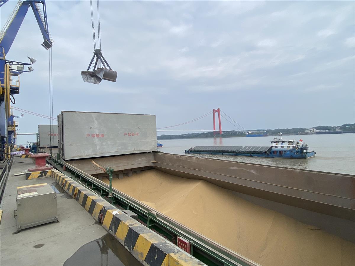 装载的大豆货船抵达黄石