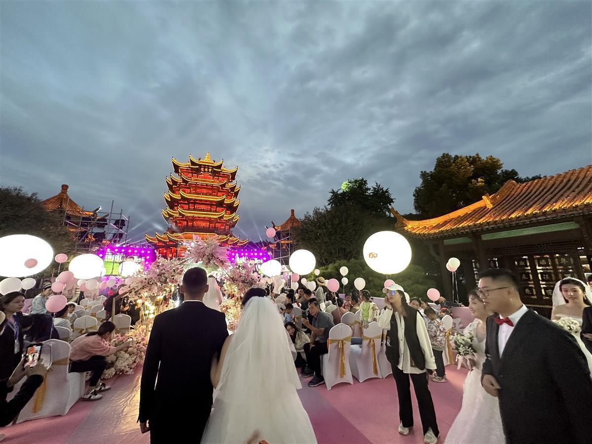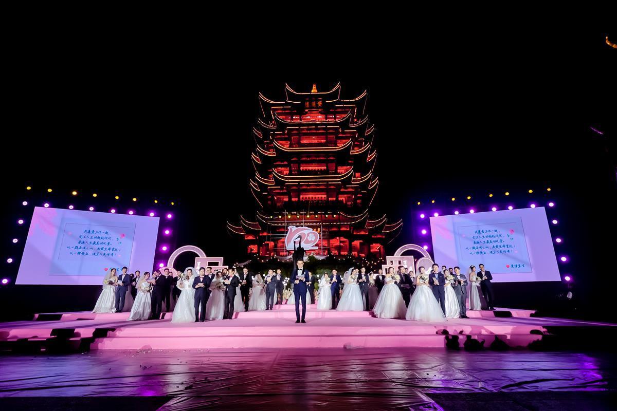 千古名楼邂逅百年名院,“百年好合”又遇“百年华诞”!10月9日,武汉大学人民医院(湖北省人民医院)第五届职工集体婚礼,在武汉黄鹤楼举行。30对人民医院的新人幸福启航,用特别的“世纪·爱”集体婚礼为武汉大学人民医院百年院庆添彩。