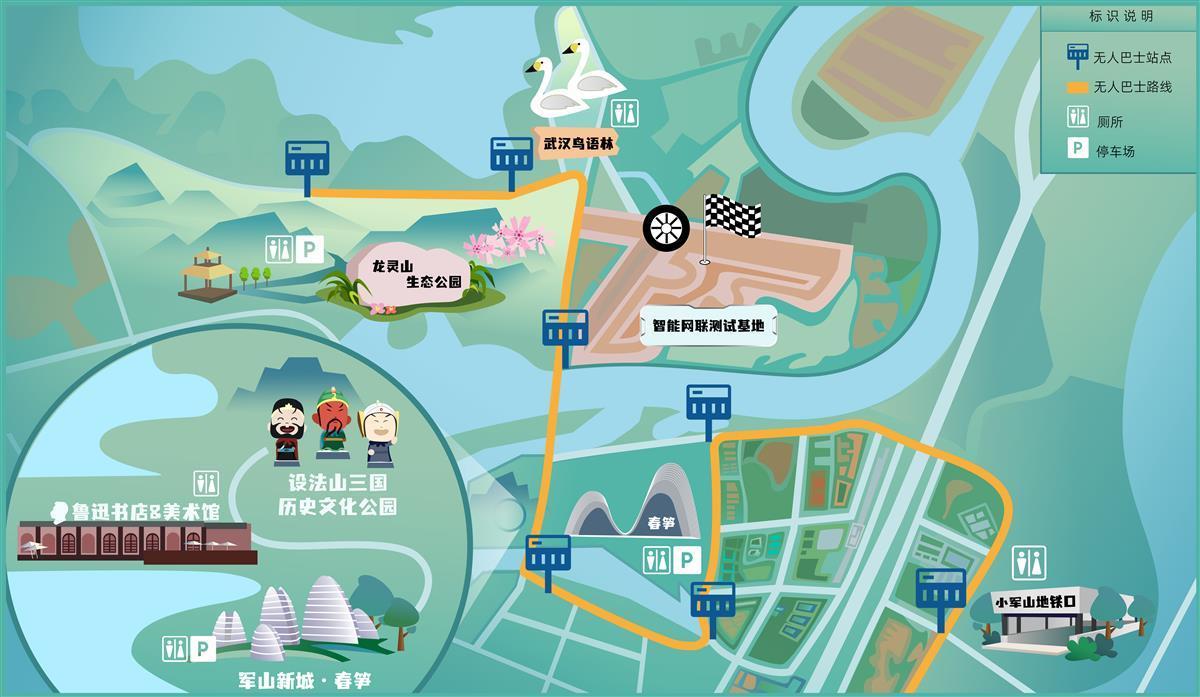 武汉经开区相关负责人介绍,这是武汉市首次开通“无人驾驶车”旅游专线,广大市民在体验无人驾驶技术带来新奇体验的同时,还能前往该区多个景点参观。据了解,“无人驾驶车”旅游专线从小军山地铁站出发,经过设法山三国历史文化公园、春笋、智能网联测试基地、鸟语林公园、龙灵山生态公园等地,单程预计35分钟。