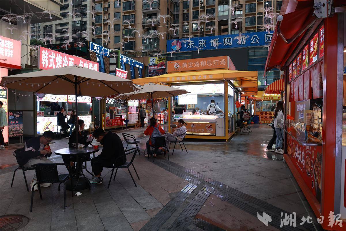 湖北日报讯(记者刘洁、通讯员朱仙红、臧诗琴)10月11日晚,武汉市洪山区街道口遇见未来城特色街区,流光溢彩,美食香气扑鼻,吸引了许多市民前来消费。