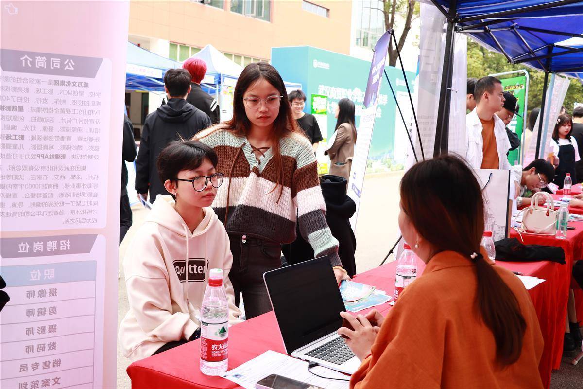 “同学来看一下,岗位不限专业!”“入职后是没有编制的,但其他待遇和有编制职工相同!”“如果个性开朗,善于言谈,可以考虑我们的客服岗!”10月12日,武汉商贸职业学院2023年秋季大学生实习暨就业双选会举行,约260家企业到校招聘。