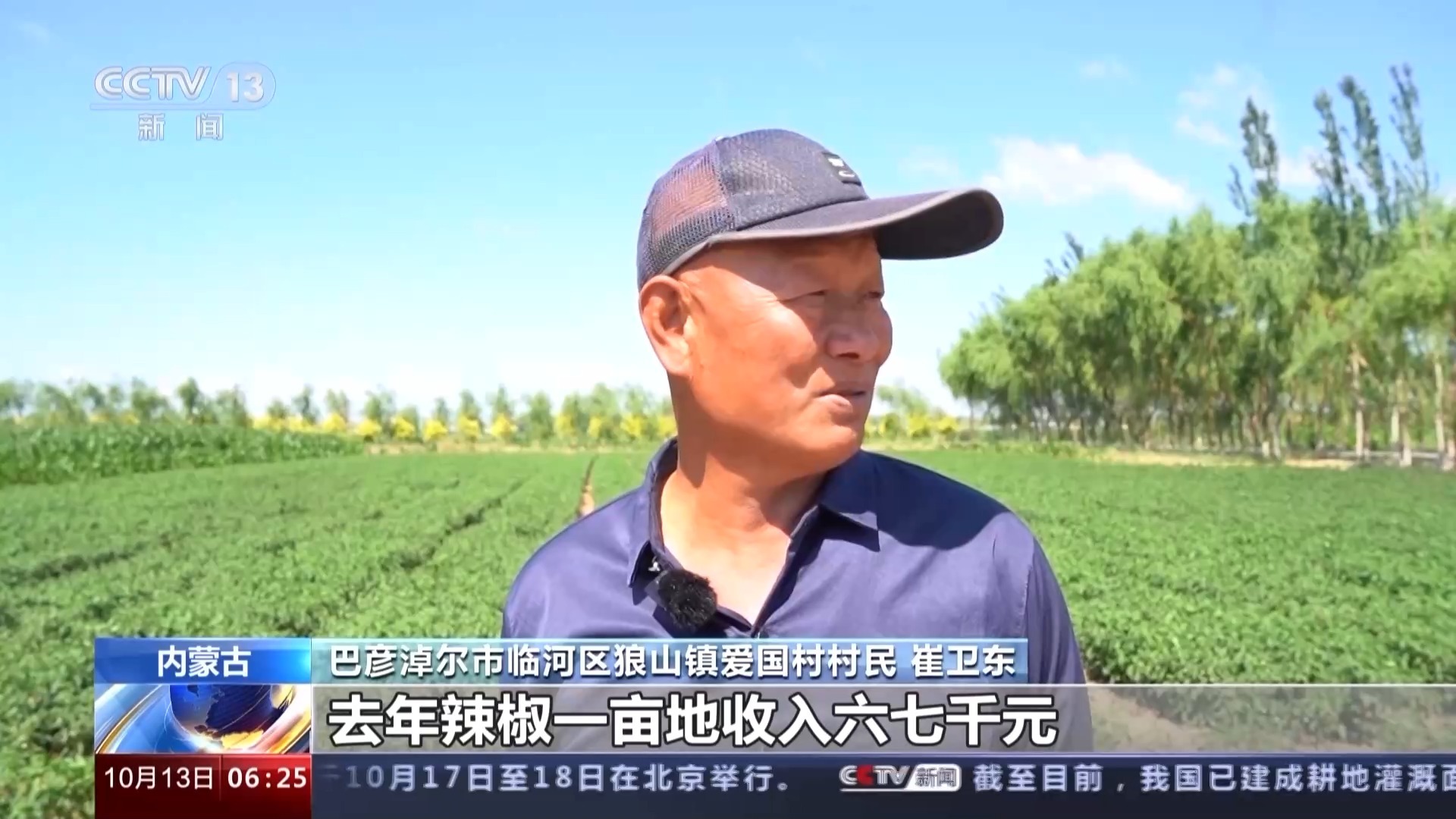 内蒙古自治区巴彦淖尔市临河区狼山镇爱国村村民 崔卫东:去年辣椒一亩地收入六七千元,以前想也不敢想。