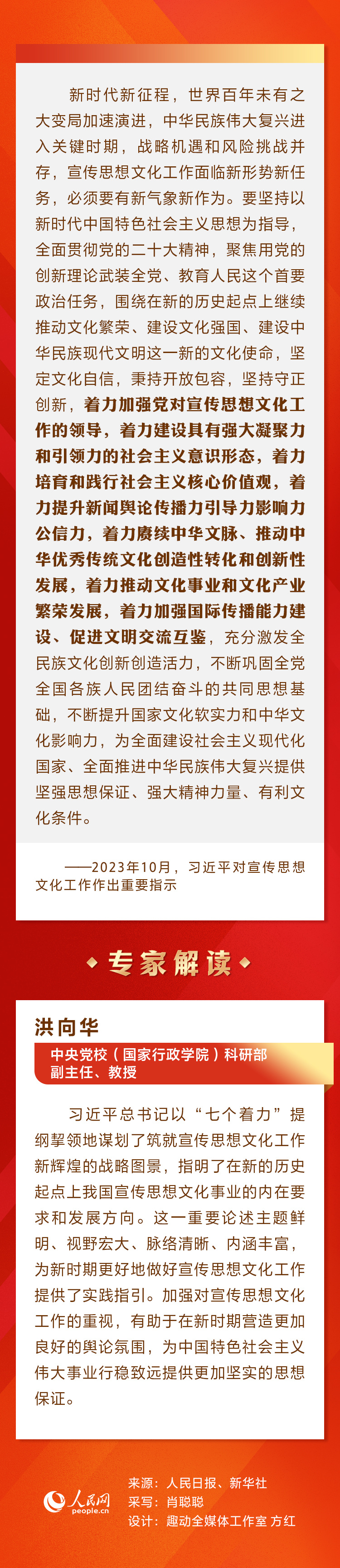 中共中央总书记、国家主席、中央军委主席习近平近日对宣传思想文化工作作出重要指示指出,宣传思想文化工作事关党的前途命运,事关国家长治久安,事关民族凝聚力和向心力,是一项极端重要的工作。人民网带您重温习近平总书记重要指示并邀请专家解读。