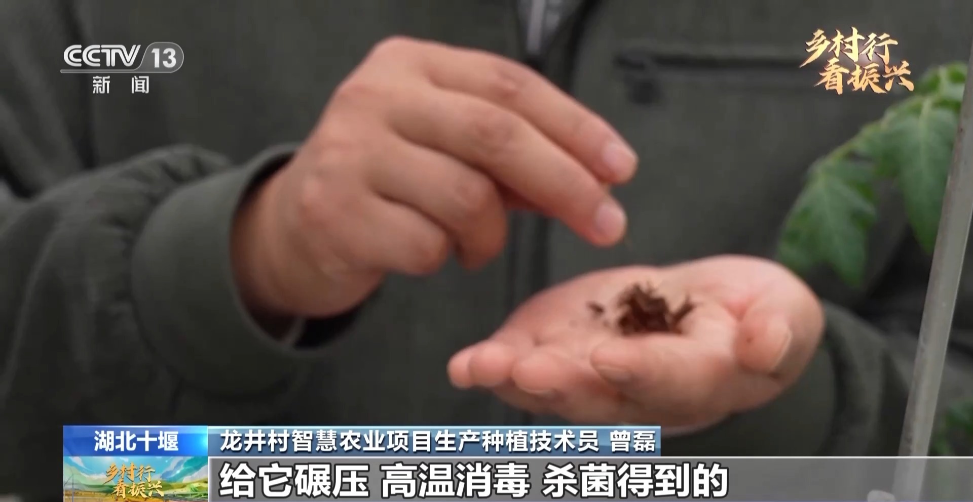 龙井村智慧农业项目生产种植技术员 曾磊:这个椰糠就是我们平时吃椰子的椰子壳外壳打造的,给它碾压、高温消毒、杀菌得到的。