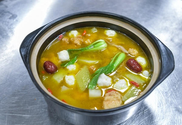 极目新闻记者看到,有的厨师在辅助食材选取上别有新意。有厨师选用冬瓜、莴苣做辅料,广水市聚龙大酒店的大厨陈进选用西红柿和虾滑,而北京广水鸡汤馆的王光海和广水市凤凰山庄的吴清玲二位厨师则不加任何辅料。