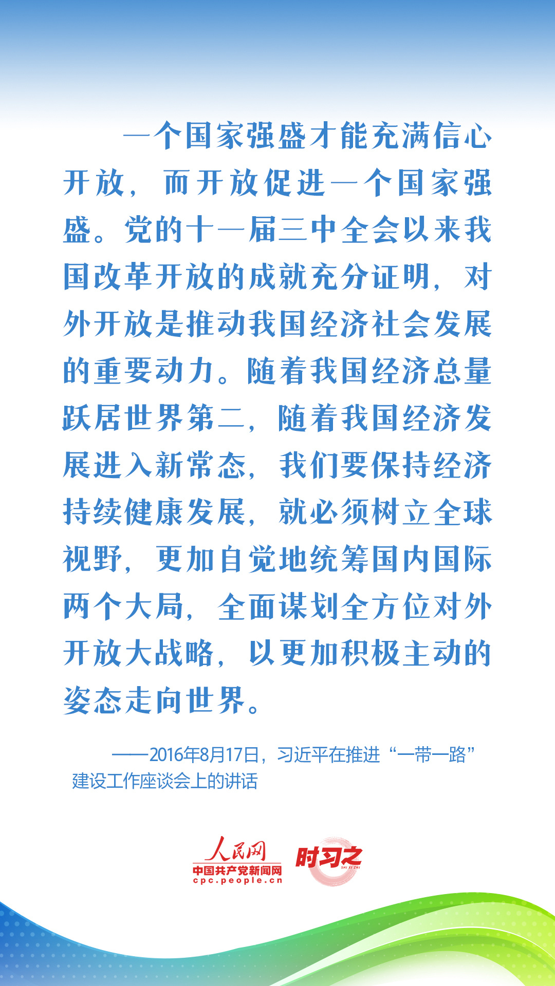 “‘一带一路’倡议,有利于扩大和深化对外开放。”习近平主席多次强调坚持对外开放的重要性,在扩大对内对外开放中强动力、增活力,将“一带一路”建成开放之路。