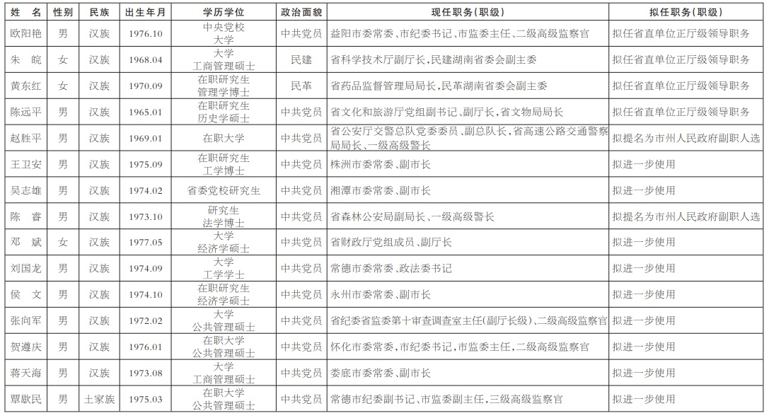 为了加强对干部选拔工作的监督,提高识别和任用干部的准确程度,现对省委常委会会议研究决定的下列拟任人选进行任前公示: