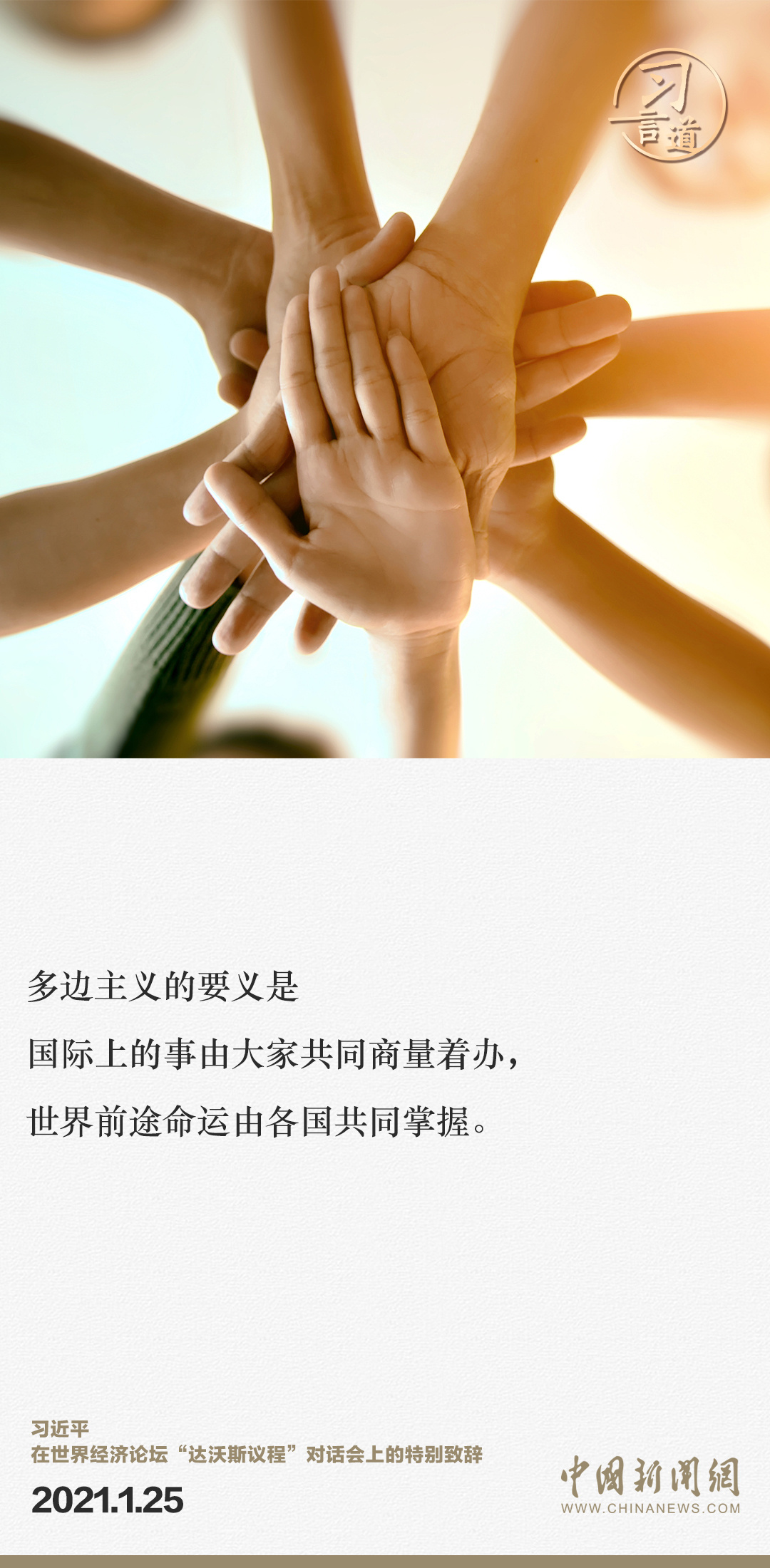 多边主义的要义是国际上的事由大家共同商量着办,世界前途命运由各国共同掌握。习近平主席在多个场合提到要完善全球治理,践行真正的多边主义。
