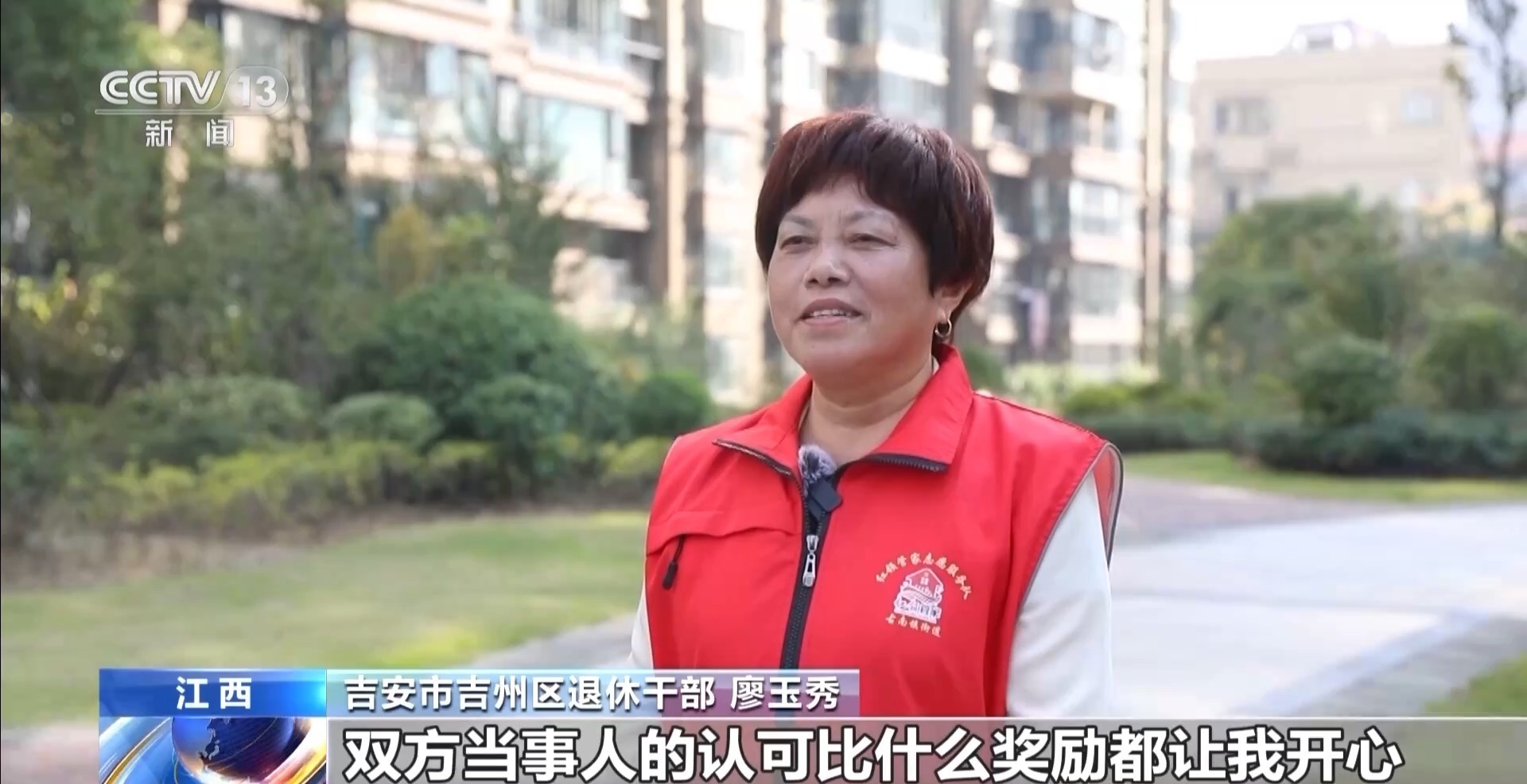 江西吉安市吉州区退休干部 廖玉秀:在调解工作中,每成功调解一例案件,双方当事人的认可比什么奖励都让我开心,心里很有成就感。