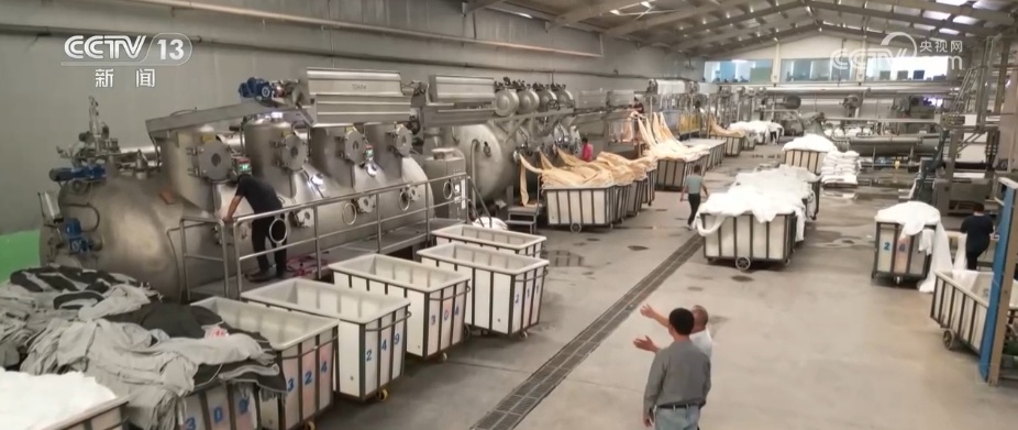 企业和高校合作,污水经过预处理形成可以继续使用的中水。同时,科研新技术让化学原料循环使用。政府和企业联合打出的环保“组合拳”,减低了环境污染,还给上游棉纺企业节约了印染的支出。