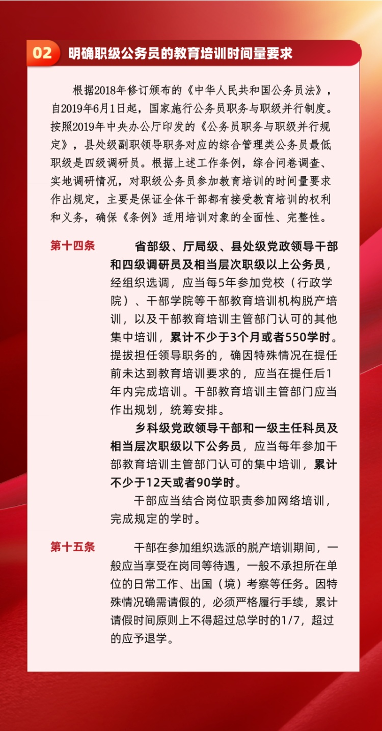 资料来源:《干部教育培训工作条例》 、《为新时代干部教育培训工作高质量发展提供制度保证——中央组织部负责人就修订颁布〈干部教育培训工作条例〉答记者问》等
