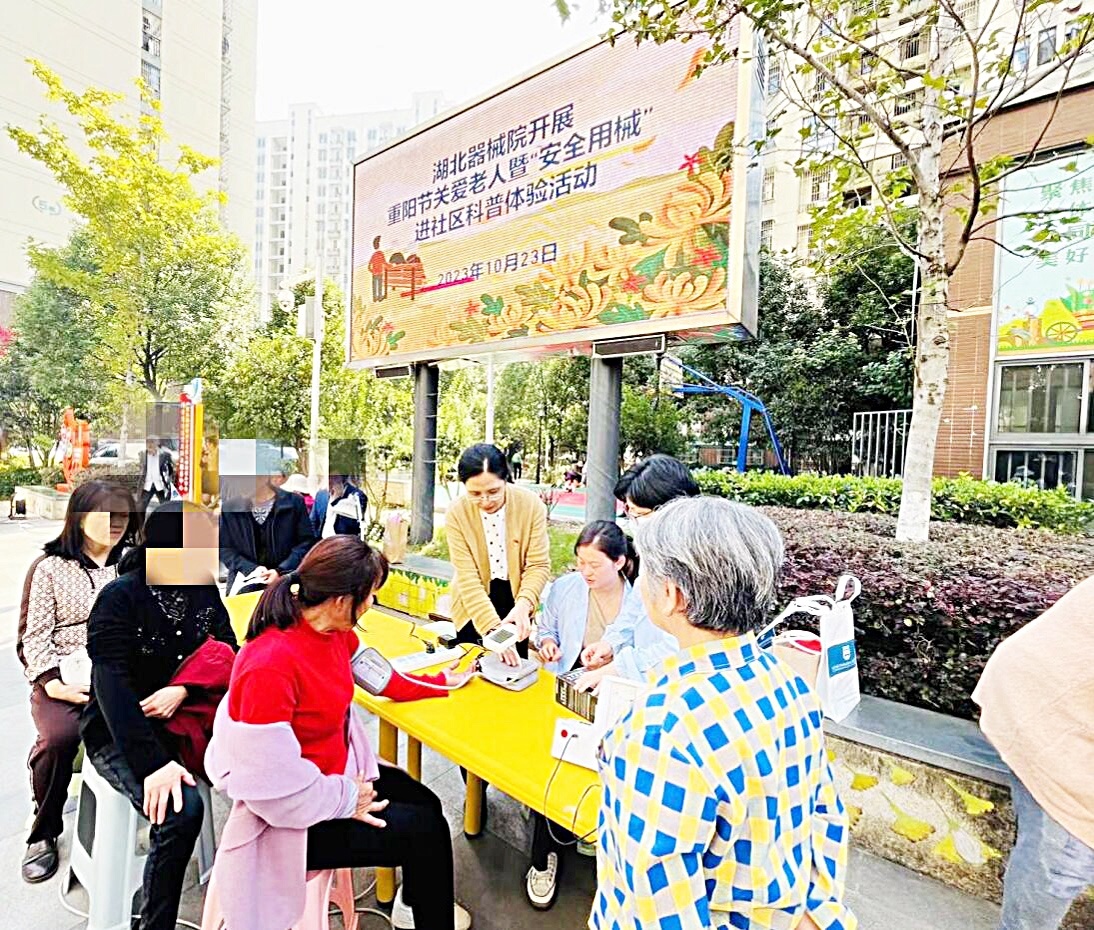 10月23日是重阳节,湖北省医疗器械质量监督检验研究院开展重阳节关爱老人暨“安全用械”进社区科普体验活动。