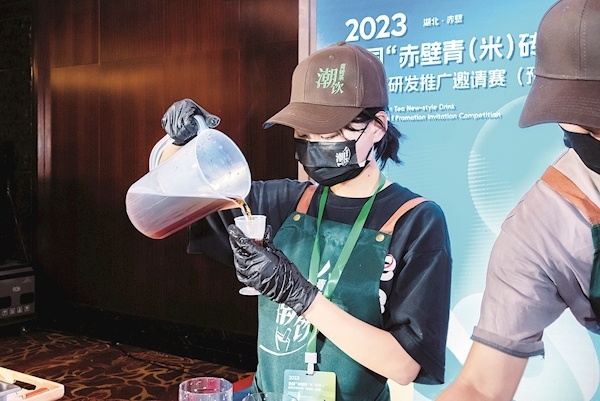 10月25日,2023全国“赤壁青(米)砖茶+”新茶饮研发推广邀请赛(预赛)在湖北赤壁开赛,来自黑龙江、上海等全国各地的24家茶饮品牌及茶企组队参赛。大赛上,一批以青砖茶为基底的新式茶饮首次亮相,不仅造型独特且风味各异,现场飘出阵阵茶香。