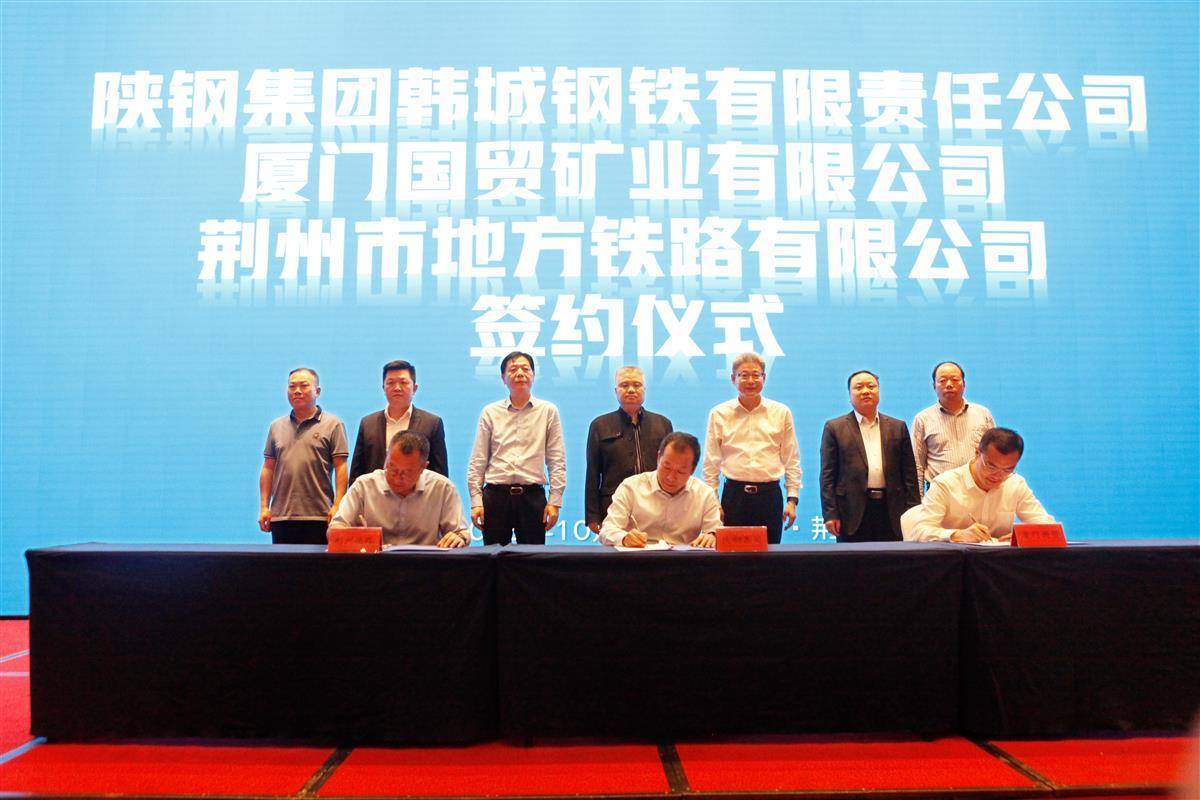 湖北日报讯(记者罗序文、通讯员赵叶秋、陈明)10月24日,陕钢集团、厦门国贸与荆州市地方铁路有限公司签订战略合作框架协议,将陕钢集团进口铁矿石库存堆场前移至荆州,并商议在荆州建立铁矿石战略储配基地。