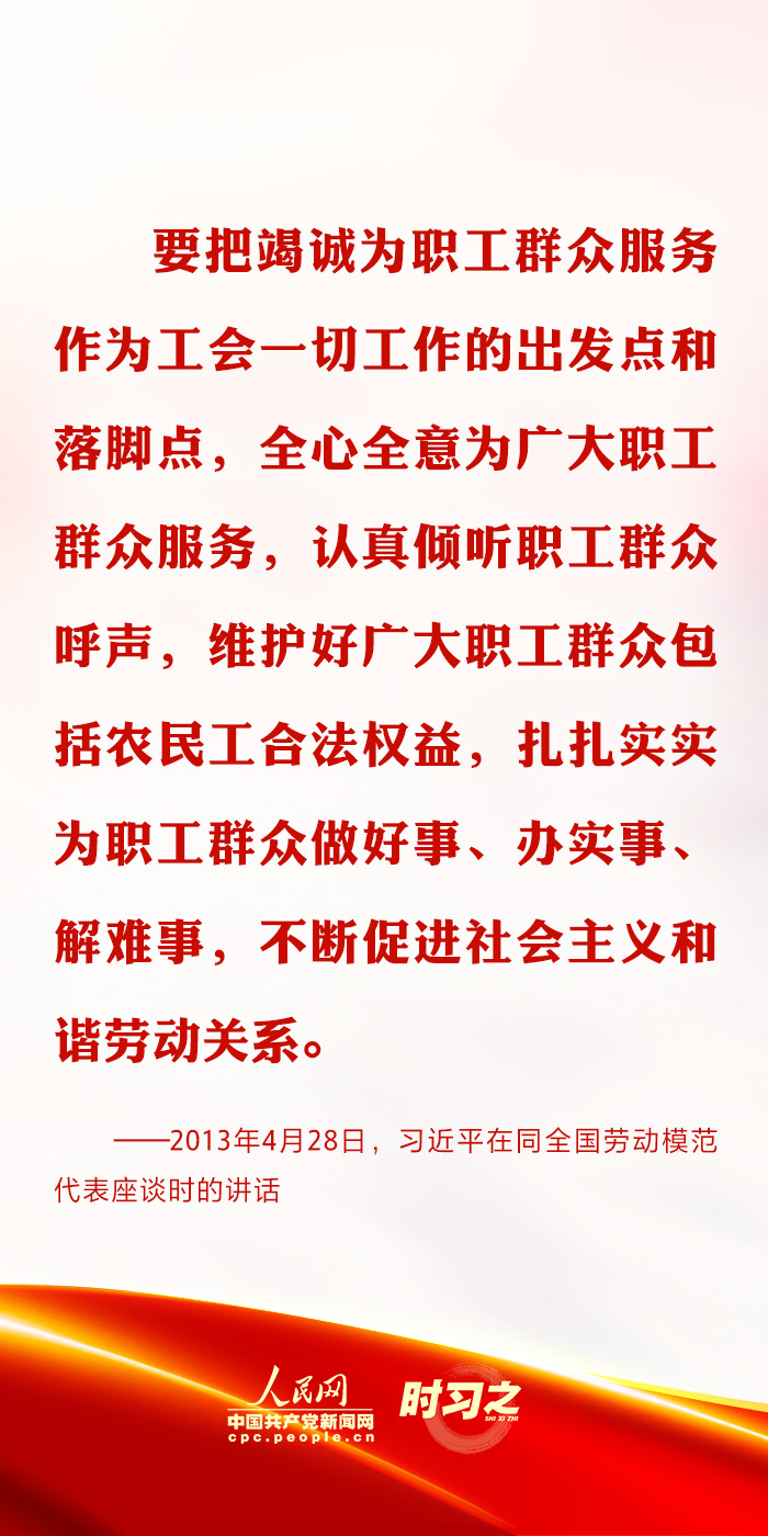 来源:人民日报、《习近平关于工人阶级和工会工作论述摘编》