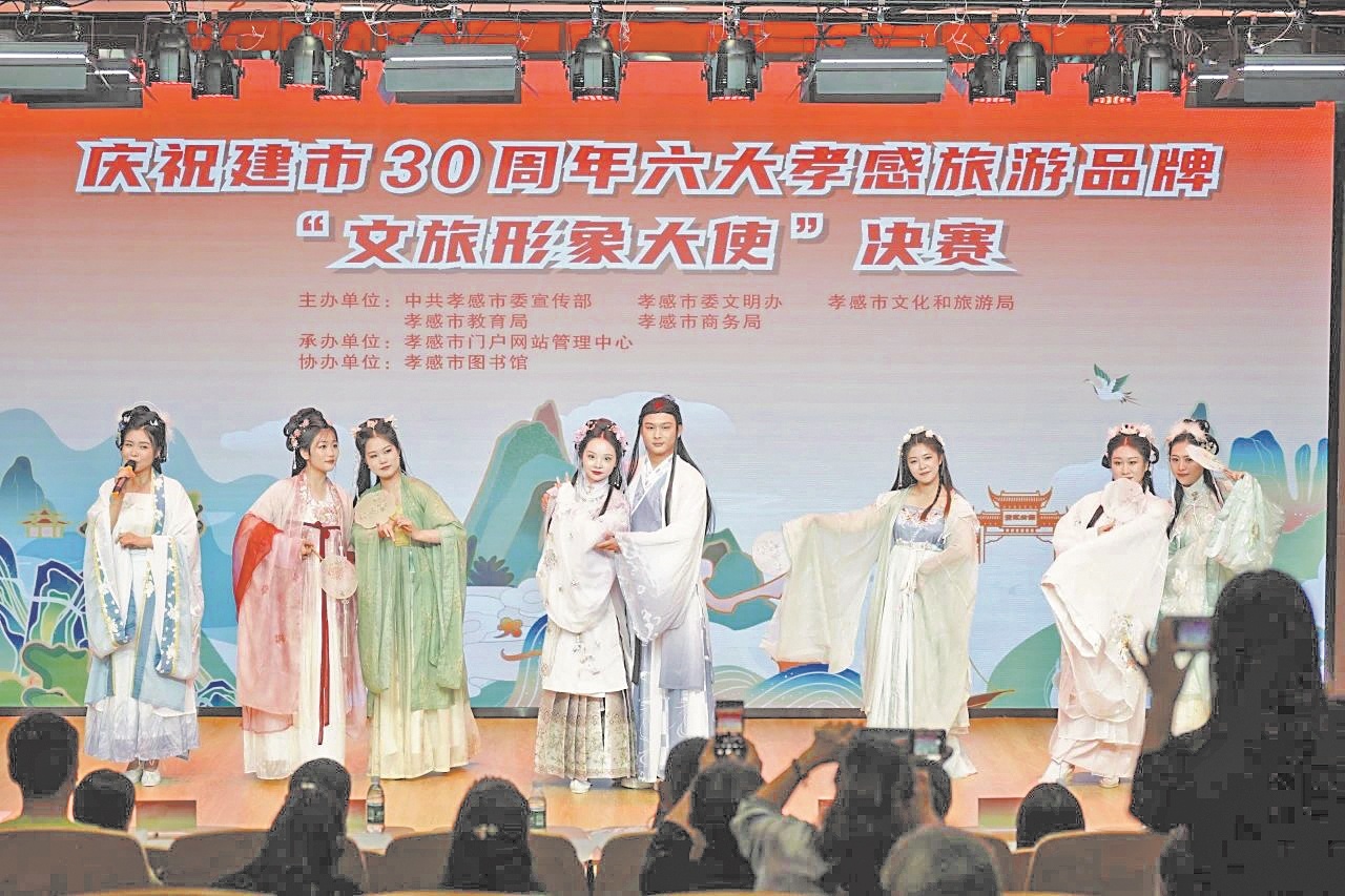 楚天都市报极目新闻讯(记者陈勇 通讯员孝轩)10月28日,由孝感市委宣传部、孝感市委文明办、孝感市文化和旅游局、孝感市教育局、孝感市商务局主办,孝感市门户网站管理中心承办,孝感市图书馆协办的庆祝建市30周年六大孝感旅游品牌“文旅形象大使”决赛在孝感市文化中心圆满落幕。