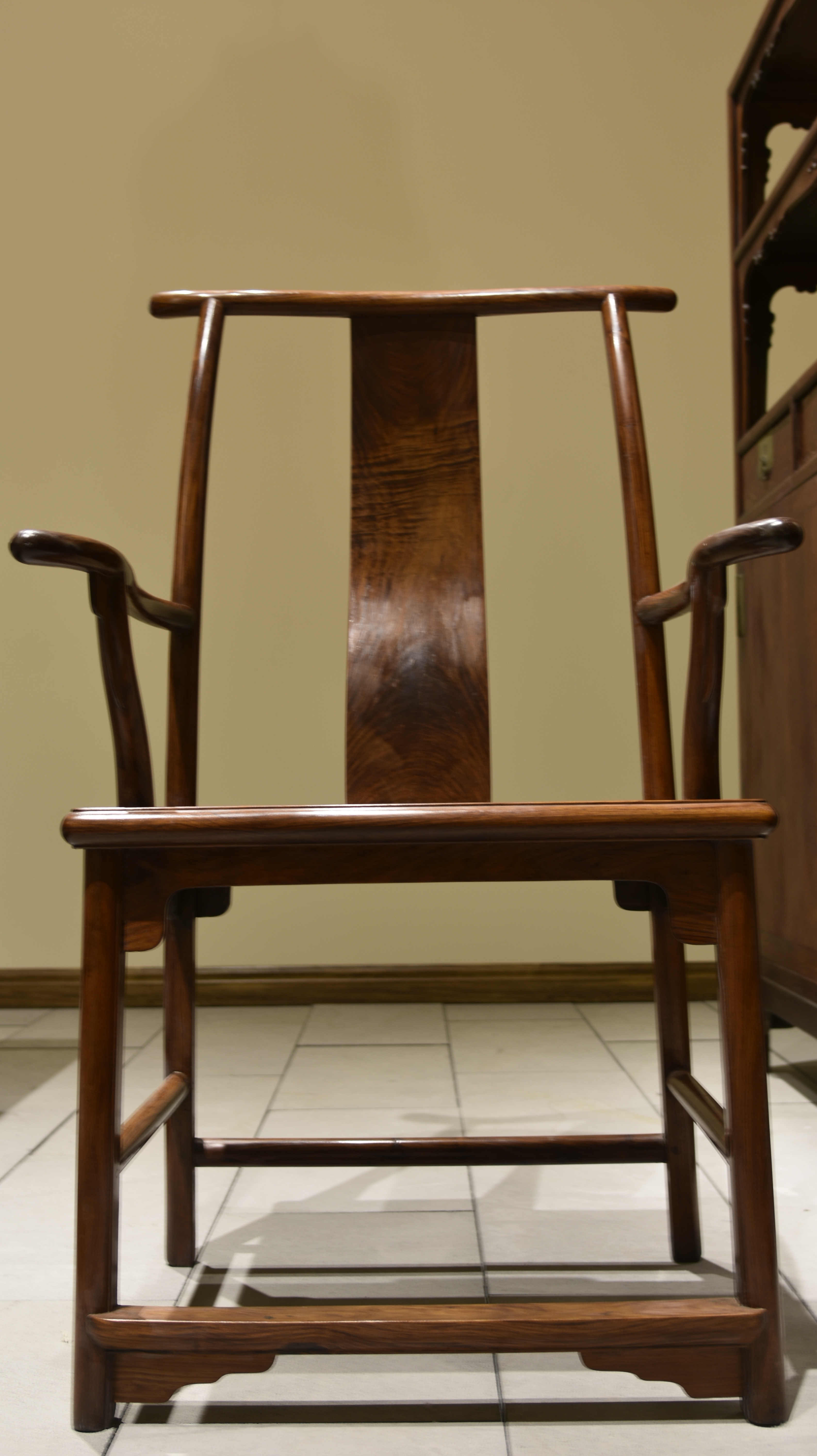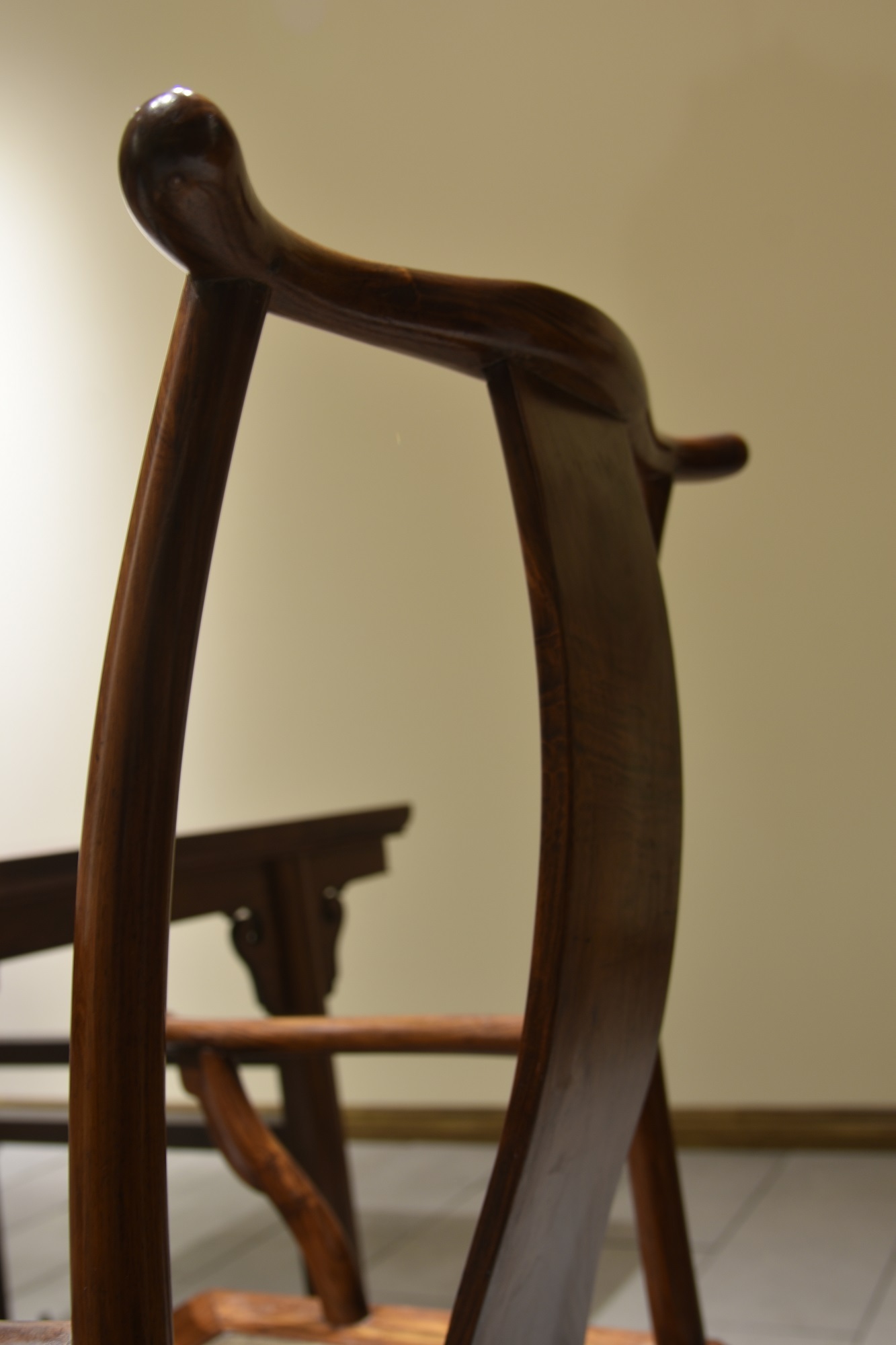 △ 黄花梨木四出头官帽椅搭脑和靠背细节图