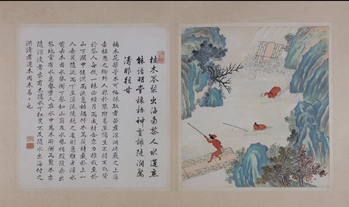 △ 《琼黎风俗图·运木》,介绍黎族人民通过水运运输黄花梨木的情形