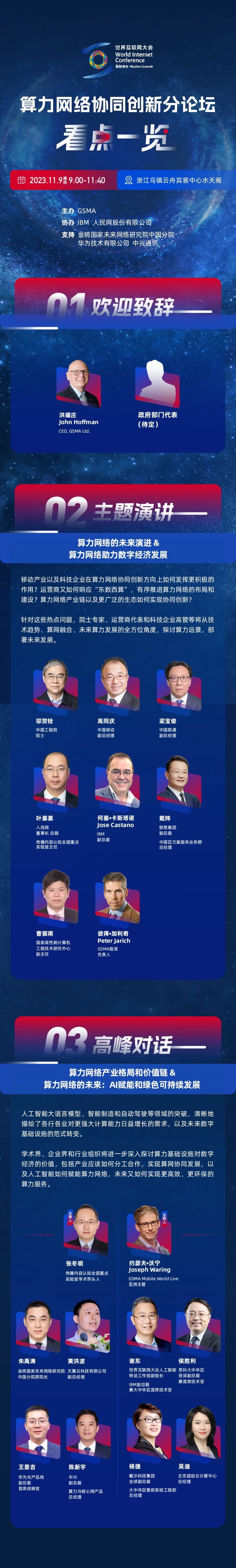 其中,“算力网络协同创新论坛”将于11月9日上午在乌镇云舟宾客中心水天阁举行。论坛由GSMA(全球移动通信系统协会)主办、IBM和人民网协办,并由金砖国家未来网络研究院中国分院、华为公司和中兴通讯支持。