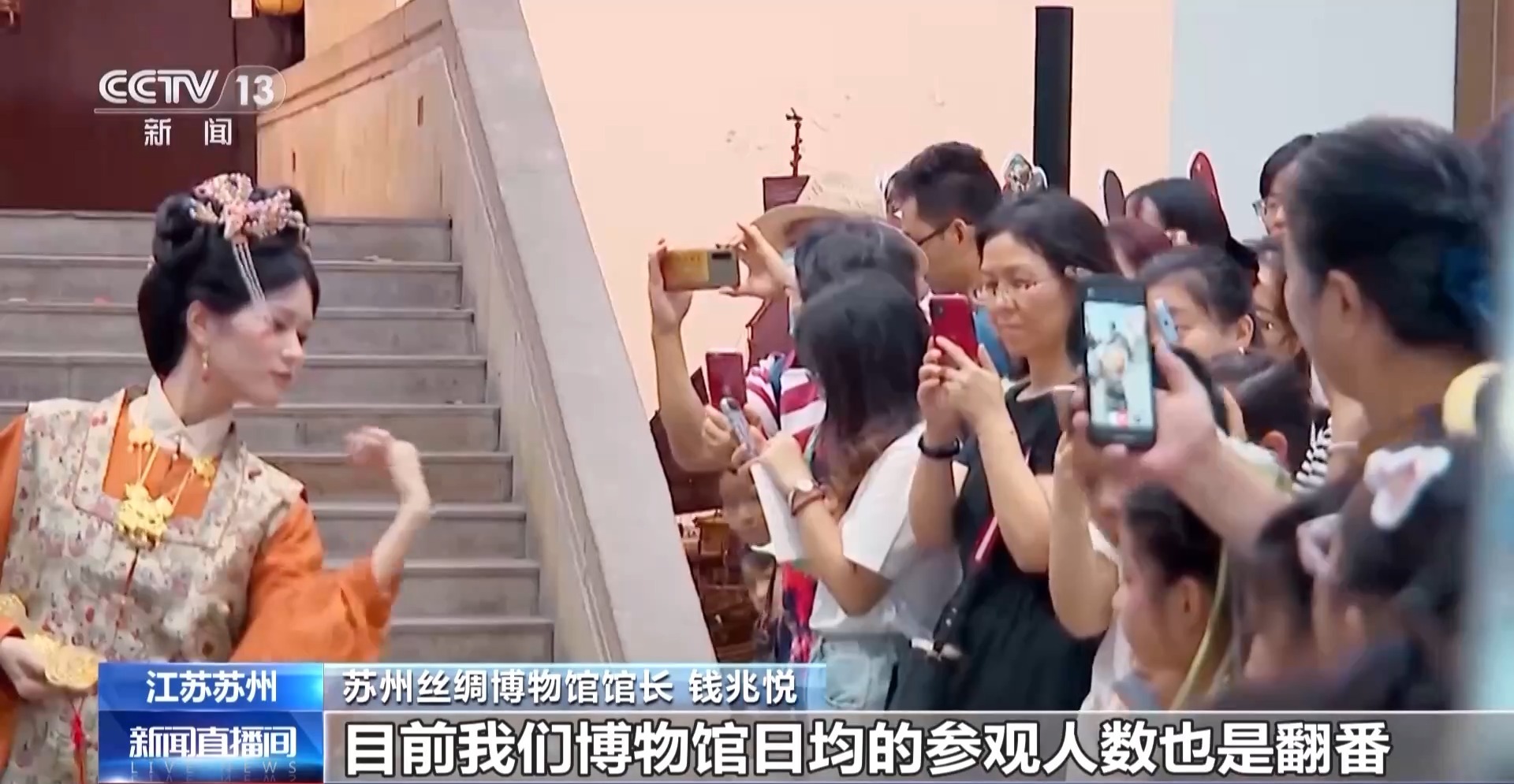 苏州丝绸博物馆馆长 钱兆悦:目前我们博物馆日均的参观人数翻倍,90后和00后观众的占比也超过了50%。通过数字化的这样一种方式,我们越来越多的丝绸纹样开始走进人们的日常生活。