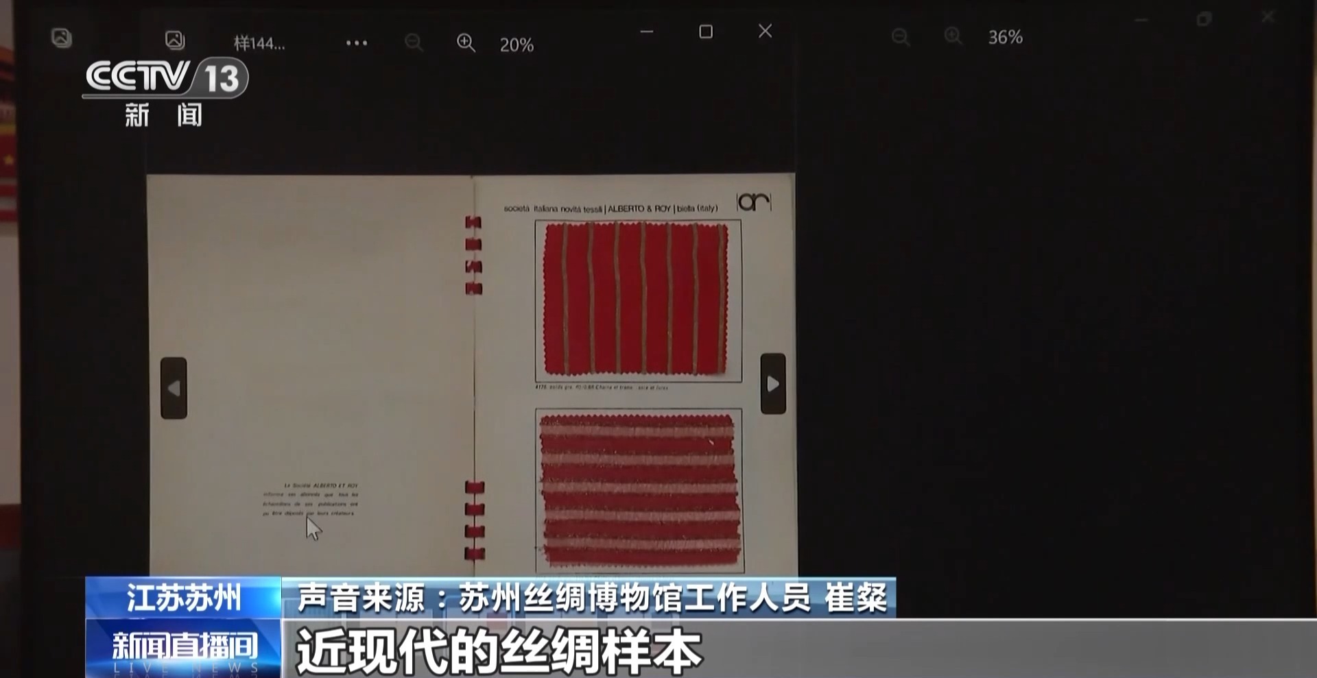 苏州丝绸博物馆工作人员 崔粲:古代的文物,目前完成的数量大概是300多件,近现代的丝绸样本目前完成是1150片。