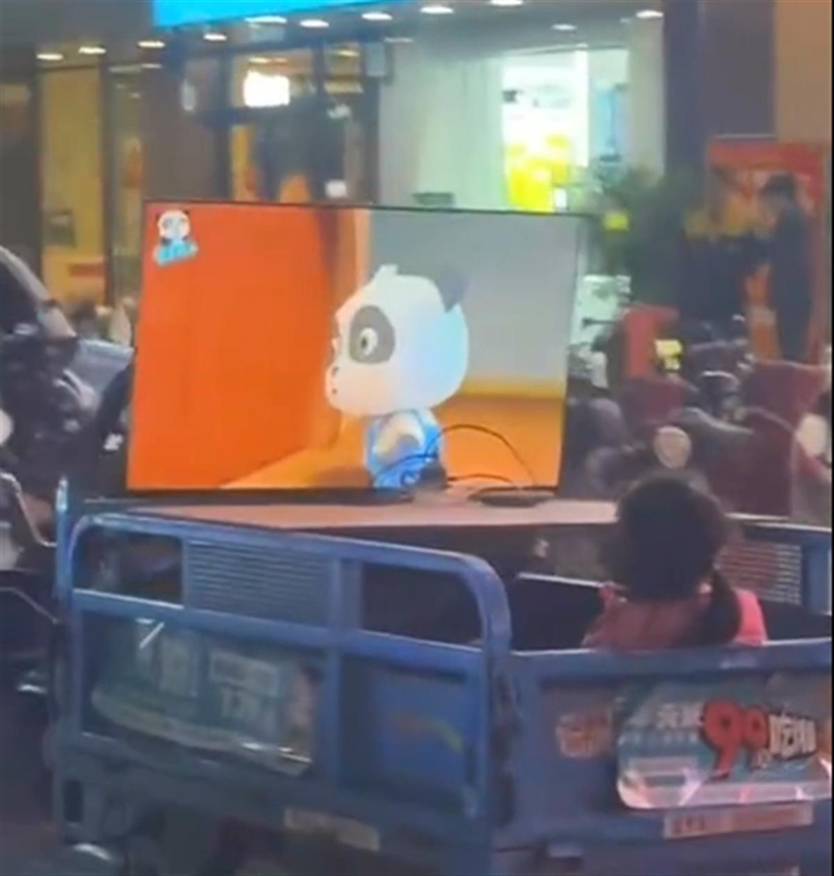 市民李先生介绍,11月3日晚7时许,他路过内黄县黄河路附近,前方一名男子所驾驶的电动三轮车吸引了他的注意。只见该三轮车的后车斗上安装了大画幅液晶电视,正播放动画片。车斗里,一名身穿红色外套的小女孩正坐着,目不转睛地看动画片。黄先生觉得很有意思,便拍了下来。