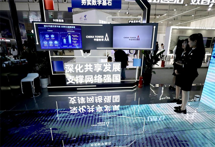 Visitors are attracted to the booth of China Tower during the 2023 WIC Wuzhen Summit in Wuzhen, Zhejiang province on Nov 7, 2023. [Photo by Zhang Wei/China Daily]