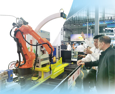 在一家德国企业展台,工作人员在讲解紧凑型机器人工作站的功能。 本报记者 王 远摄 |