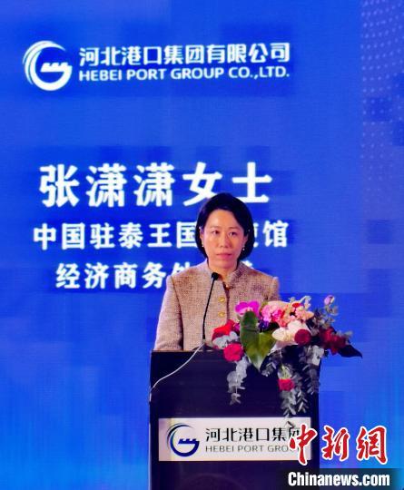 14日,河北港口集团在泰国曼谷举办推介会,中国驻泰国大使馆参赞张潇潇在推介会上致辞。李映民 摄
