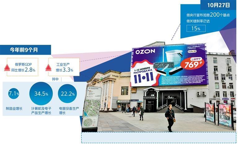 在持续不断的制裁压力下,俄经济适应新局面,增长势头得以保持,增速甚至超出监管部门预期。俄总统普京在经济问题专题会议上称,今年前9个月,俄罗斯国内生产总值(GDP)同比增长2.8%。其中,8月和9月的GDP均增长了5.2%。普京表示,俄经济发展亮点突出,主要体现在两大方面。一方面,以机械和设备制造业为代表的实体经济正在以更快的速度增长。根据统计数据,今年1月至9月,俄工业生产增长3.3%,其中制造业增长7.1%,计算机及电子产品生产增长34.5%,电器设备生产增长22.2%。普京表示,这一切都显示了俄罗斯经济的良好势头。另一方面,俄罗斯失业率持续保持较低水平。此外,8个月以来,居民工资增长速度高于通货膨胀率,实际增长达7.5%。
