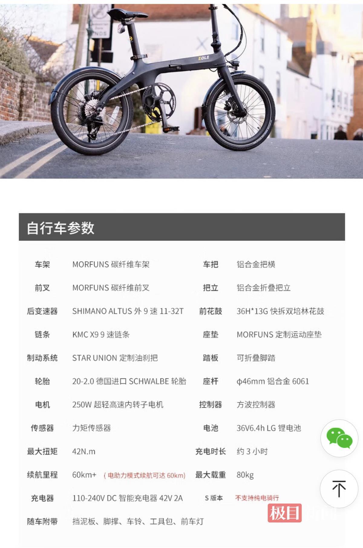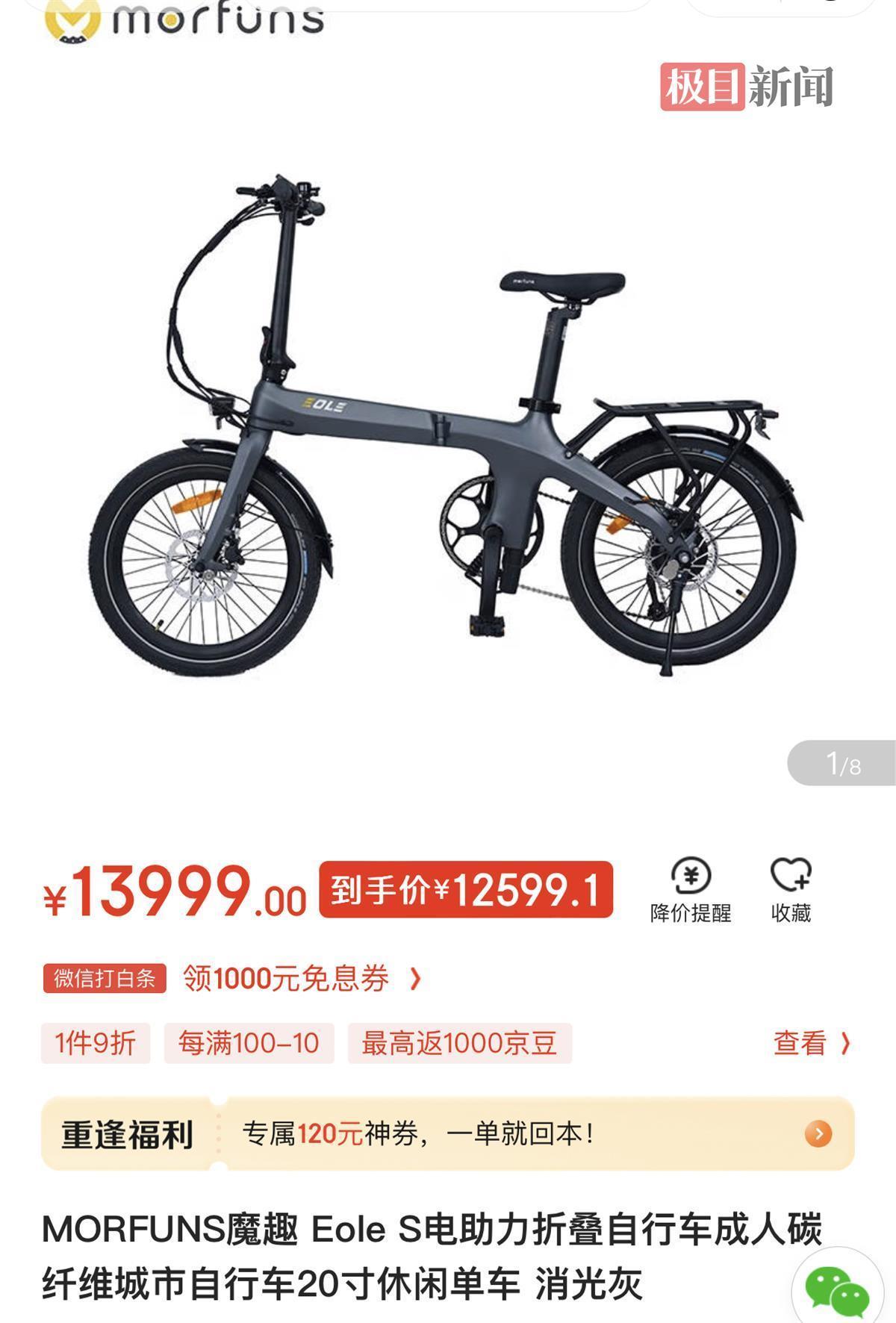 经过查阅相关购物平台,记者发现该款折叠车的日常售价为13999元,车架采用碳纤维材质,车把标配显示为铝合金把。