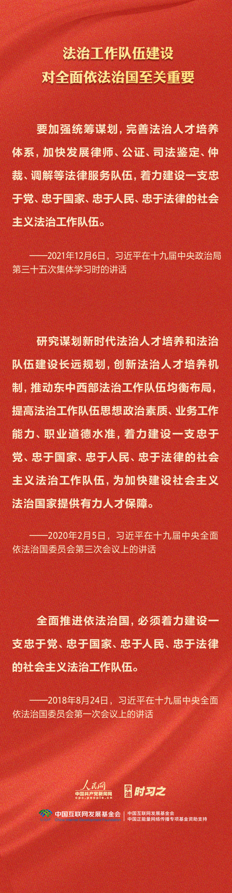 今年是贯彻落实党的二十大精神的开局之年。中共中央政治局决定从今年4月开始,在全党自上而下开展学习贯彻习近平新时代中国特色社会主义思想主题教育。习近平法治思想是习近平新时代中国特色社会主义思想的重要组成部分,人民网·中国共产党新闻网推出学法时习之·学习习近平法治思想系列策划,本篇聚焦“坚持建设德才兼备的高素质法治工作队伍”。