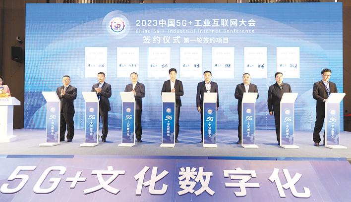 11月21日,“中国广电5G+文化数字化”平行会议现场,举行云计算+大数据、政企业务合作项目签约仪式。 (湖北日报全媒记者 柯皓 摄)