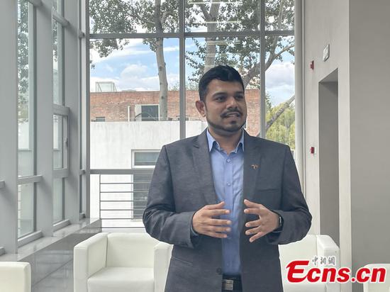 Bangladeshi pediatrician Dr. Nazmus Sakib receives an interview after the sharing session of “Xinjiang Through the Eyes of Locals” is held in Beijing on November 16, 2023. (Photo: Ecns.cn/Xue Lingqiao)
