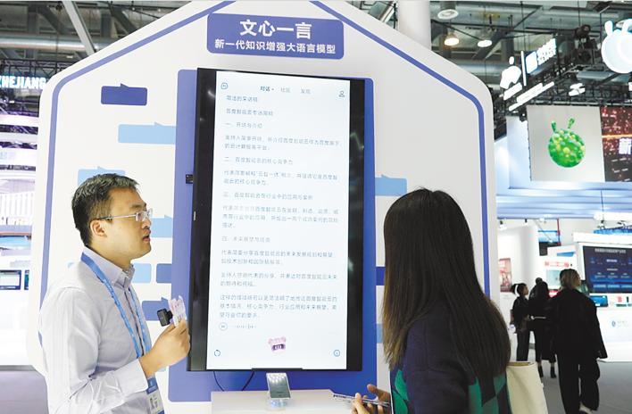 展台工作人员介绍,文心一言具备对话交互、内容创作、知识推理、多模态生成等能力,已升级到4.0版本,理解、生成、逻辑、记忆四大能力都有了显著提升。