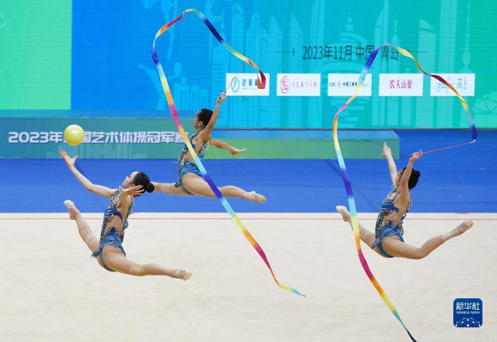 当日,2023年全国艺术体操冠军赛继续在山东青岛国信体育馆举行。