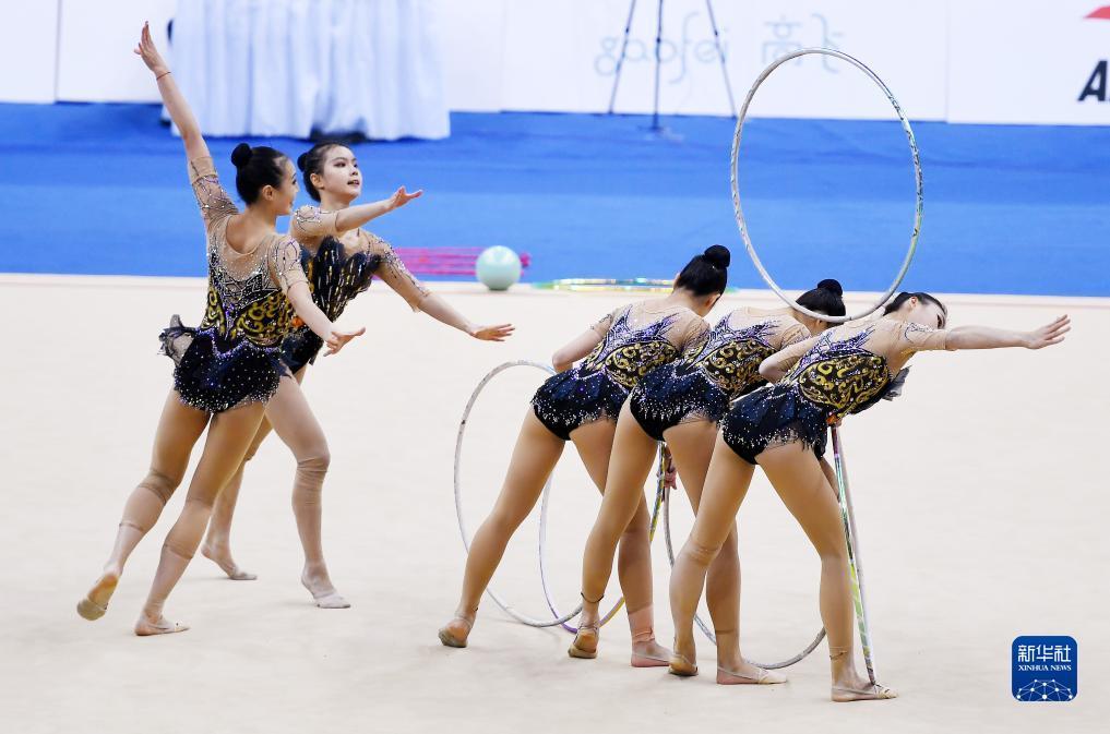 11月24日,江苏队在成年集体5圈比赛中,她们以29.70分的成绩获该项目第二名。新华社记者 李紫恒 摄
